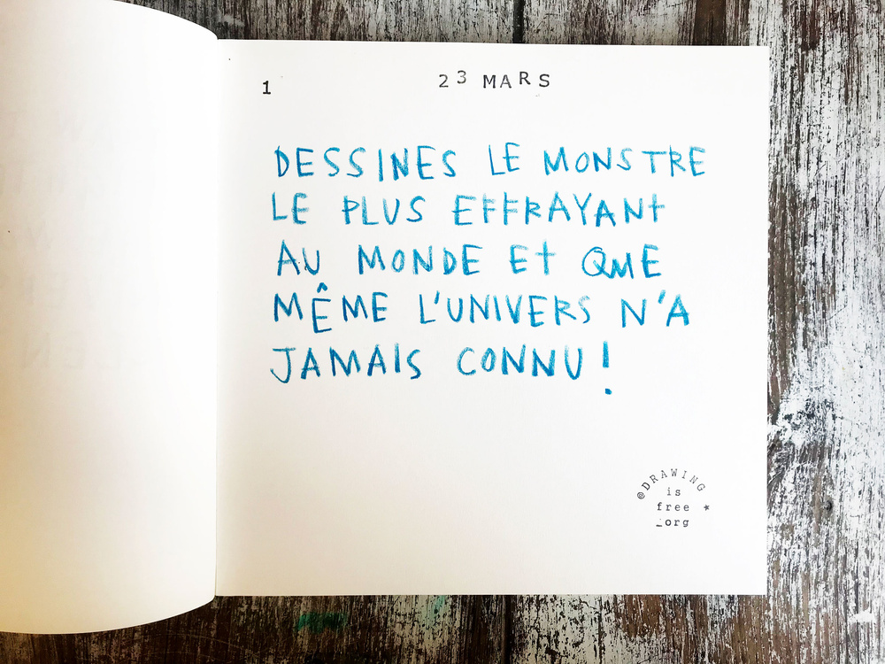 During the pandemic lockdown of 2020, Drawing is Free created daily drawing prompts to encourage families to draw together. Each was written in English and French.